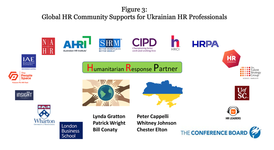 Figure 2 shows the trends and encourages the HR community to identify what they can learn from the actions of those in other settings. Figure 3 shows the global HR community support for Ukrainian HR colleagues.